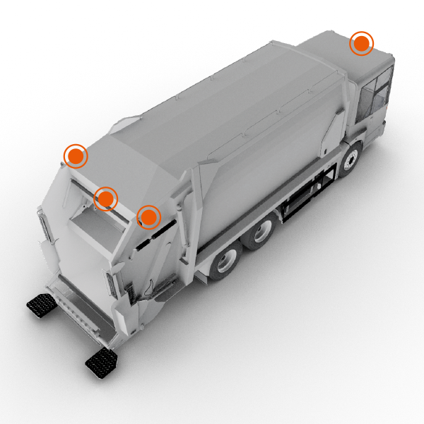 Gerade Entsorgungsfahrzeuge sind im dichten innerstädtischen Verkehr unterwegs. Hier ist ein 360°-Rundumsichtsystem nur zu empfehlen.