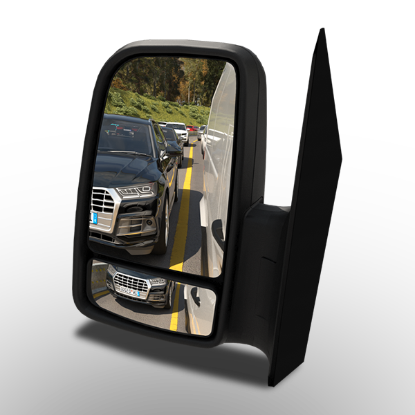 Bei den Transportern kann das gesetzlich geforderte Sichtfeld des Hauptspiegels durch einen Zusatzspiegel ergänzt werden. Eine Rückfahrkamera bietet eine ideale Ergänzung beim Rangieren des Fahrzeuges.