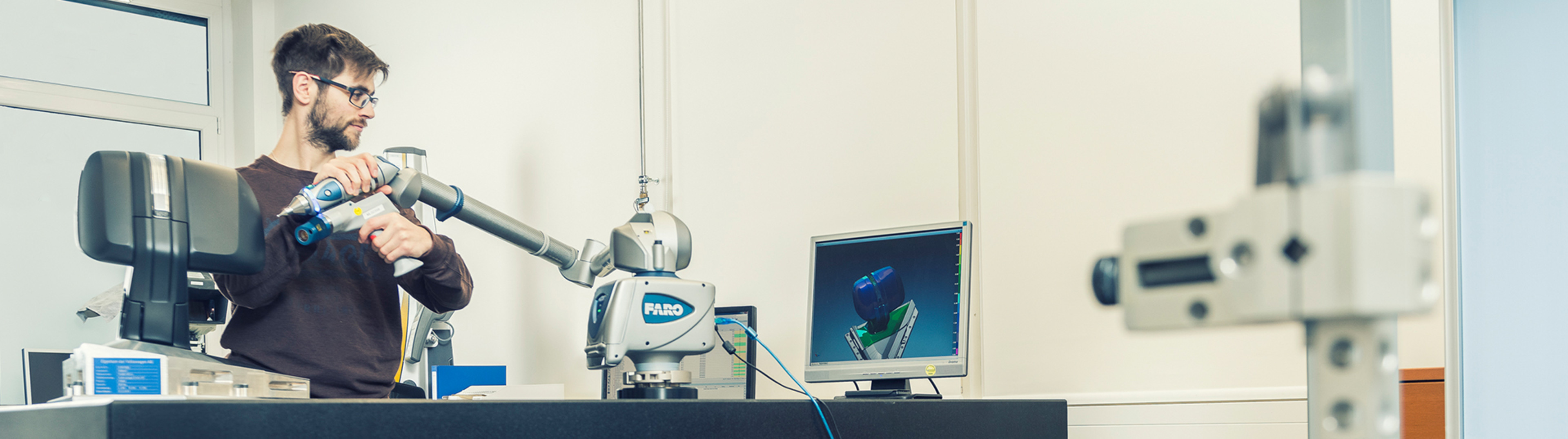 In unserem Messlabor am Standort Ergersheim vermessen wir Einzelteile, Bauteilgruppen und Komplettsysteme unterschiedlichster Materialien, etwa mit einem portablen Messarm oder einer 3D-Koordinatenmessmaschine. Ziel: ein Soll-Ist-Vergleich der Teile oder Systeme zum CAD-Modell bzw. Zeichnung oder auch ein Vorher-Nachher-Vergleich von Bauteil-zu-Bauteil.